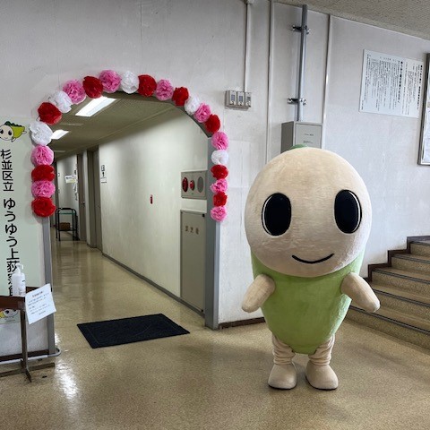 杉並区のゆるキャラ「なみすけ」に来てもらい、12時からと14時からの2回、登場しました。なみすけとの記念撮影を楽しんでいただきました